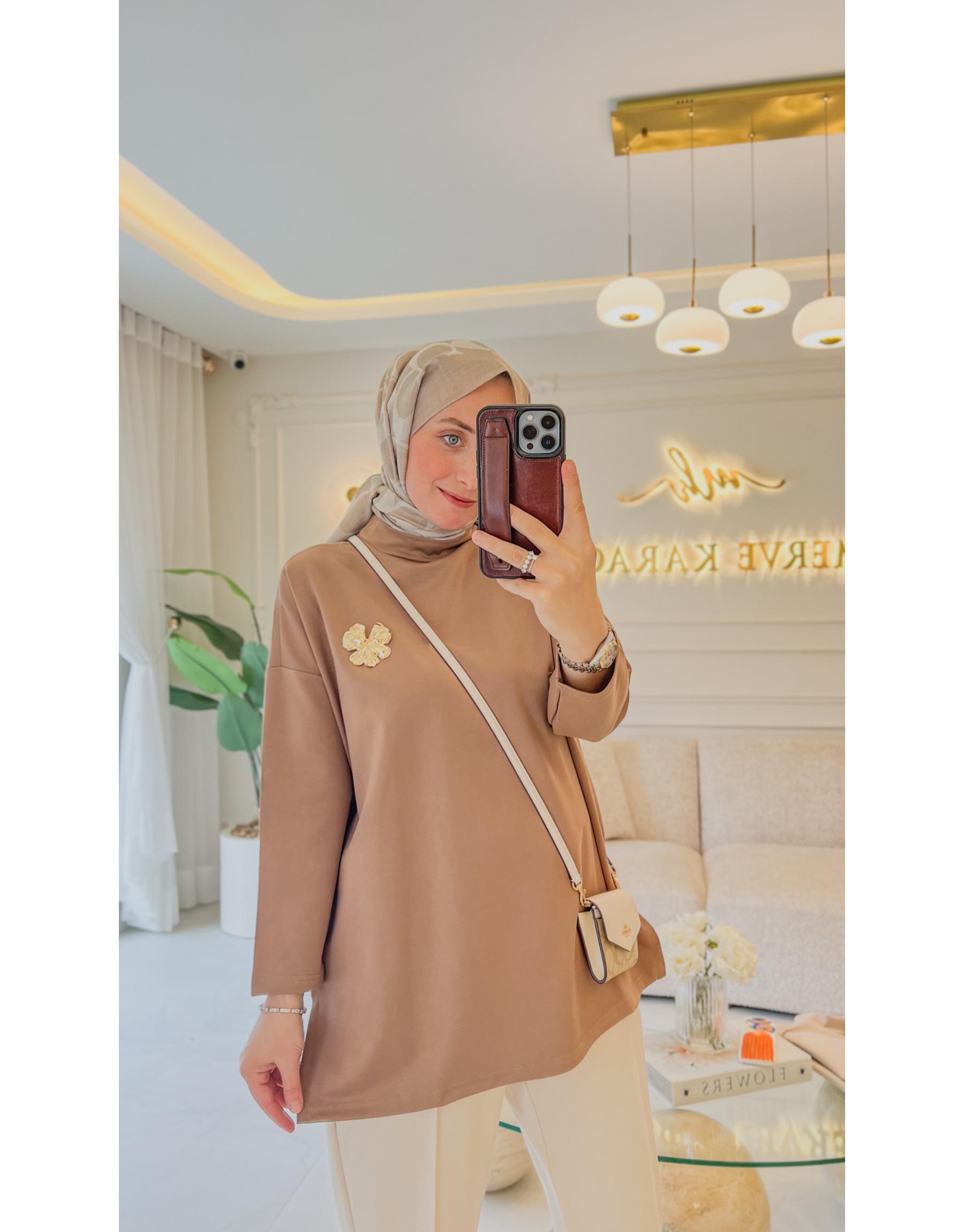 Üzerinde broş aksesuar detayı ile zarif görünüm